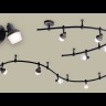 Трековая система 220V на гибкой шине длиной 200см, в комплекте 4 стойки крепления шины и 4 головки, размер головки 12см, лампы Е14 или R50